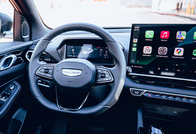 New Coolray integra equipamiento avanzado que mejora la conectividad, la seguridad y el confort, entregando una experiencia de conduccion moderna, intuitiva y eficiente.
