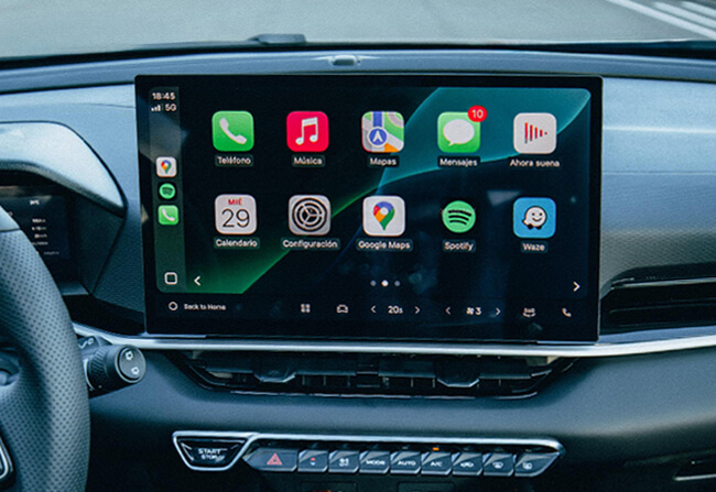 Conecta tu smartphone y mantén todo bajo control de forma segura. Accede a llamadas, mensajes, música y navegación directamente en la pantalla del New Coolray gracias a Apple CarPlay® y Android Auto®, usando comandos de voz o la interfaz táctil para una experiencia simple, intuitiva y sin distracciones.